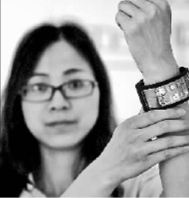 5月17日,具有完全自主知識(shí)產(chǎn)權(quán)的維信諾(固安)第六代全柔AMOLED(有源矩陣有機(jī)發(fā)光二極體面板)生產(chǎn)線,在河北固安啟動(dòng)運(yùn)行。圖為工作人員在展示一款柔性顯示智能可穿戴手機(jī)。新華社發(fā)